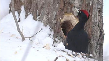 2025:12:16:00:00:11 東海大學與北海道綜研發現:札幌的黑啄木鳥將市郊落葉松人工林作為採食場,在樹幹上挖洞改變環境